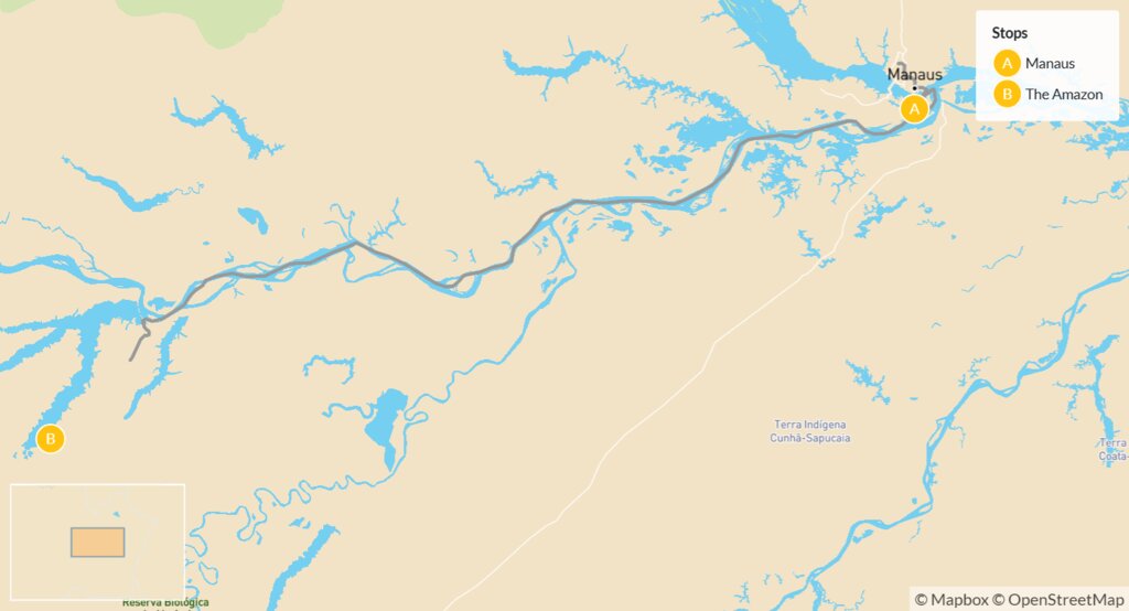 Map of Kayaking Adventure in Brazil’s Amazon – 8 Days