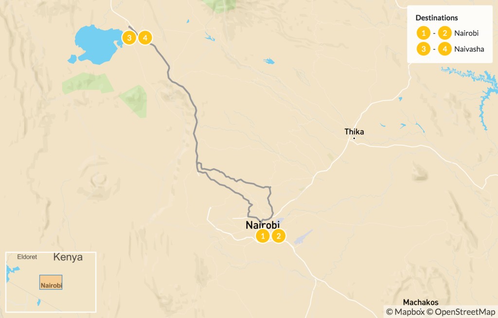 Following the tour, continue the drive to the heart of Kenya’s central highlands where you’ll stay overnight near Lake Naivasha (54 miles/88 km). You’ll have the rest of the day free to enjoy the town of Naivasha and its freshwater lake with birds, rhinos, and an island boasting non-predatory wildlife at your own pace.