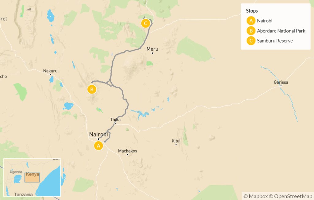 Map of Kenya Off-the-Beaten Path Safari: Aberdare & Samburu – 5 Days