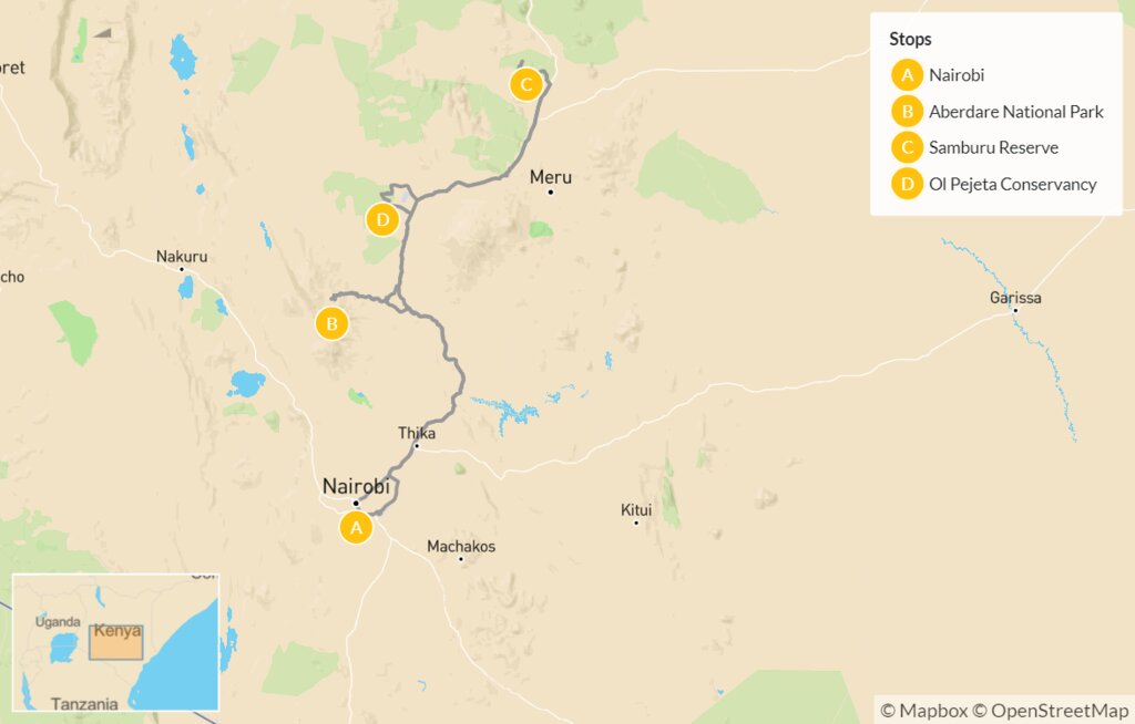 Map of Kenya Off-the-Beaten-Path Safari: Nairobi, Aberdare, Samburu & Ol Pejeta – 7 Days
