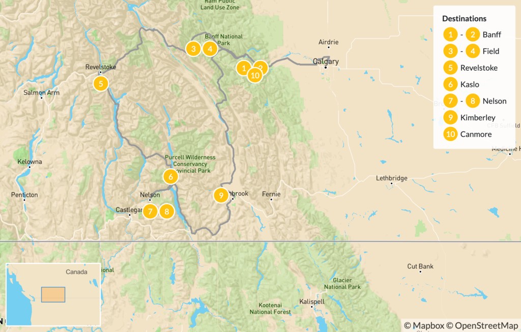 Map of Kootenay Rockies: Hot Springs Circle Route – 11 Days