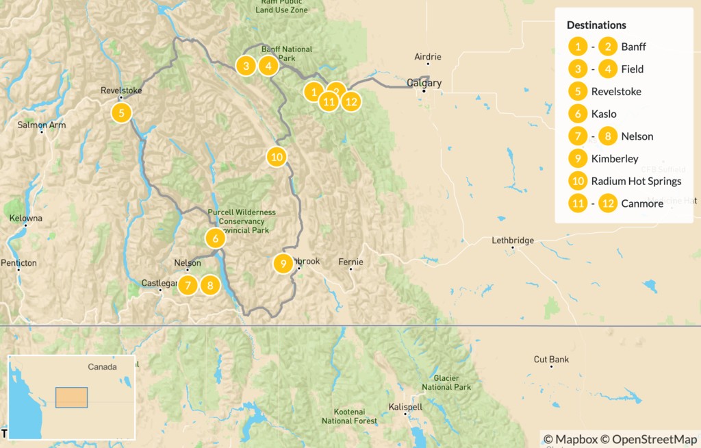 Map of Kootenay Rockies: Hot Springs Circle Route – 13 Days