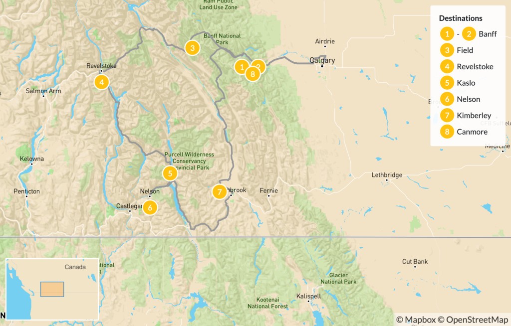 Map of Kootenay Rockies: Hot Springs Circle Route – 9 Days