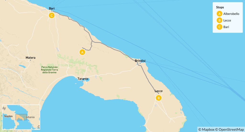 Map of Laidback Puglia: Alberobello, Lecce & Bari – 10 Days