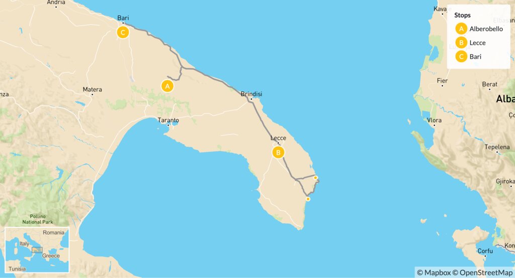 Map of Laidback Puglia: Alberobello, Lecce & Bari – 11 Days