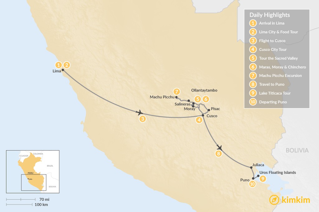 Map of Lake Titicaca & Sacred Valley Adventure – 10 Days