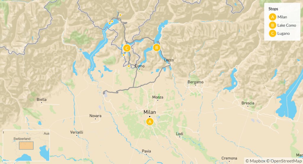Map of Lakes, Food & Wine Tour of Como & Lugano – 7 Days