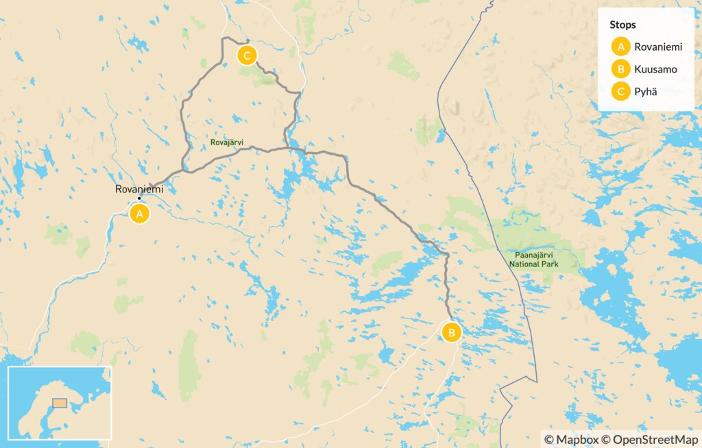 Map of Lapland Animal Summer Adventure: Rovaniemi, Kuusamo & Pyhä – 7 Days