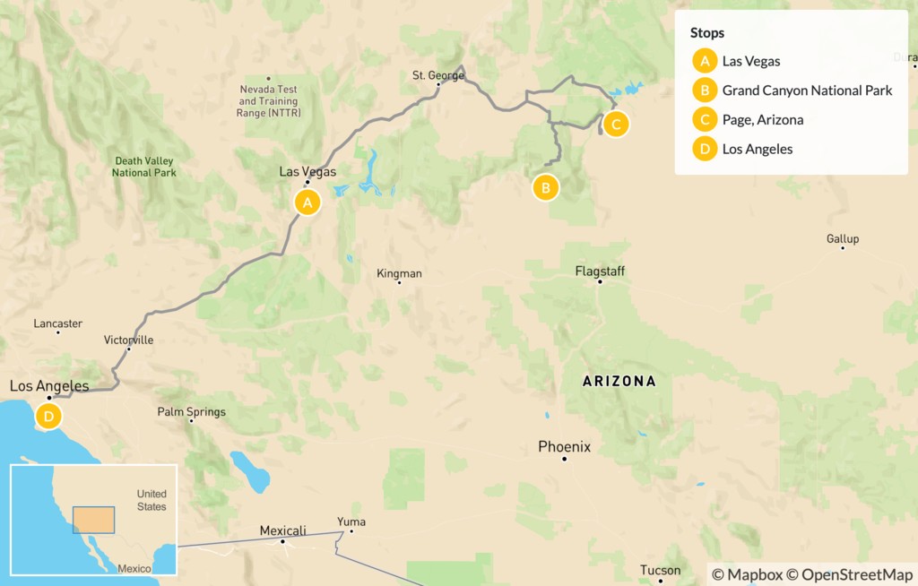 Map of Las Vegas and the Grand Canyon – 7 Days