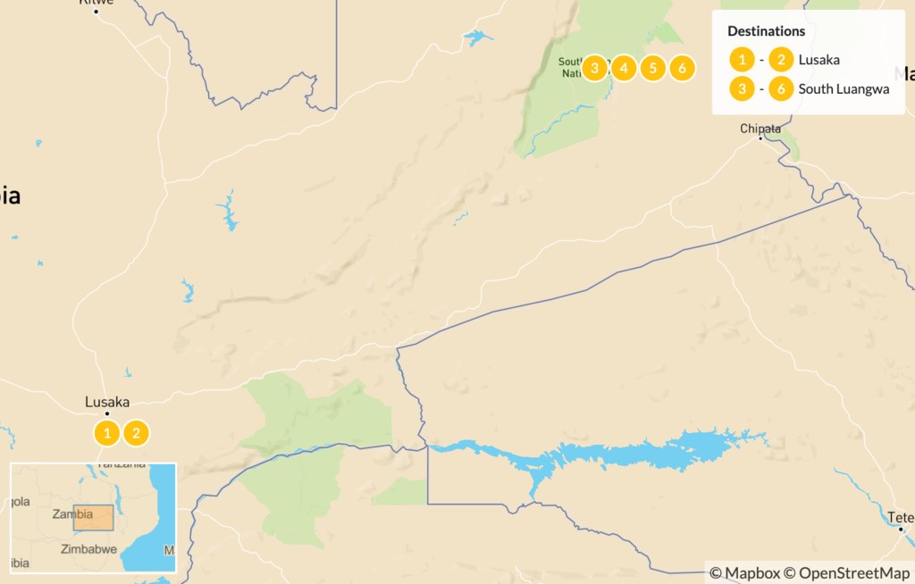 Map of Lilayi & South Luangwa Safari in Zambia – 7 Days