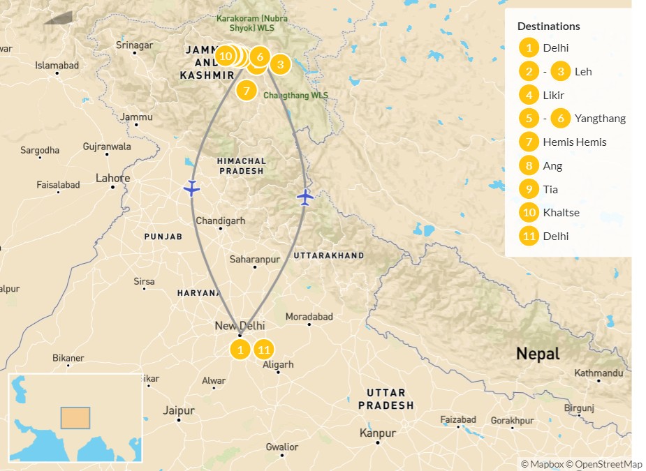 Map of Little Tibet Trek: Delhi to the Himalaya – 12 Days