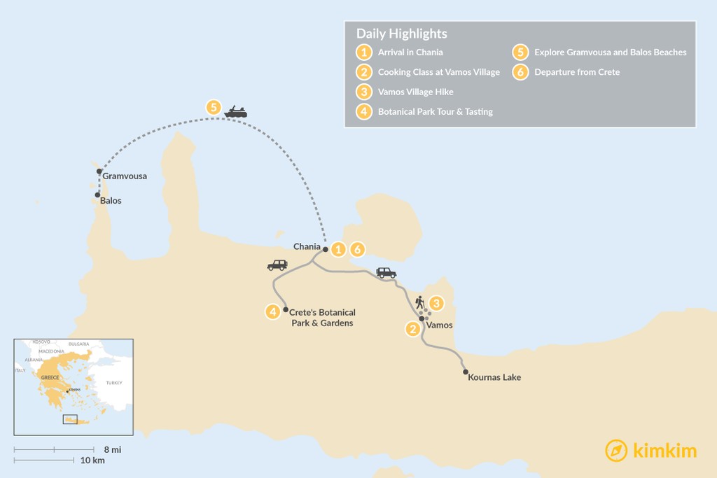 Fall in love with the largest Greek isle with the 6-day version of this unique itinerary. With a focus on culture and local flavor, you’ll stick to Chania’s highlights and the surrounding countryside. Make (and eat) an authentic Cretan feast, learn and lunch at the famous Botanical Park and Gardens, and relax on some of the most beautiful pink sand beaches in the world.