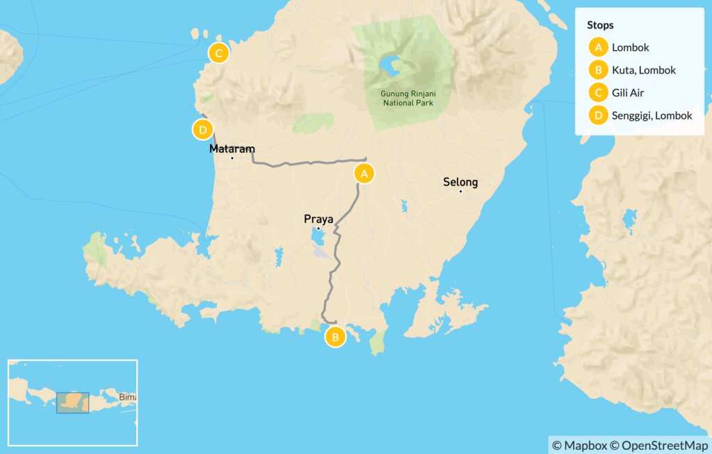 Map of Lombok’s Culture & Beaches for Families – 10 Days