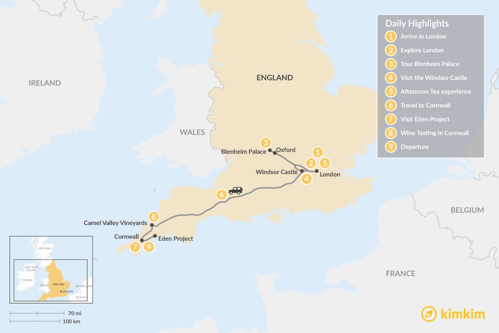 Map of London and Cornwall Adventure – 9 Days