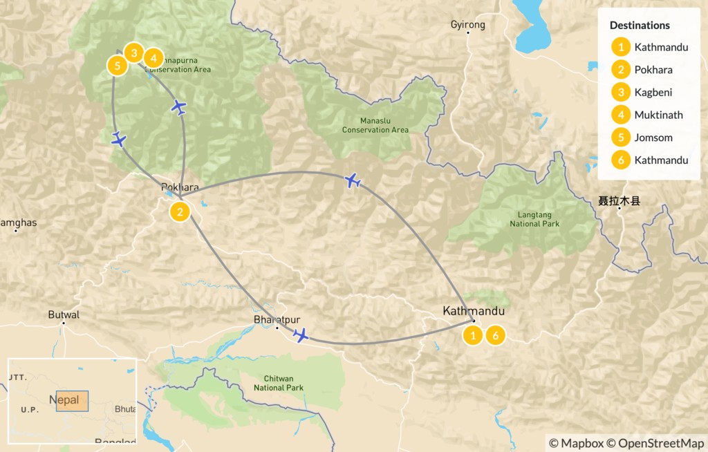 | Day 6 | Fly from Jomsom to Kathmandu via Pokhara | Kathmandu |