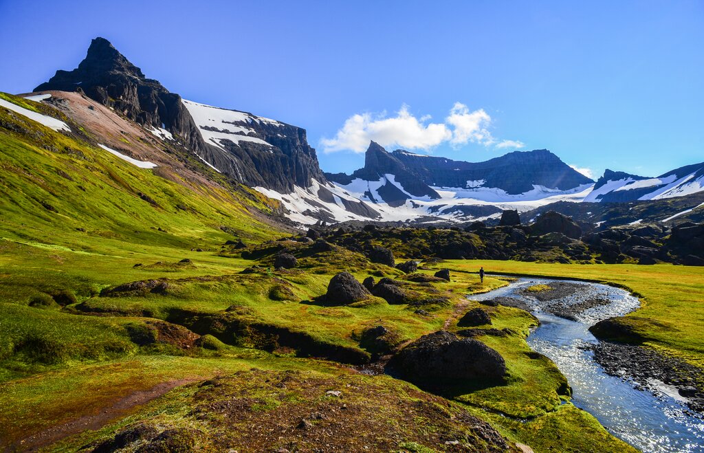 Today, you’ll explore the gems of the Eastfjords, and first on your list is Seyðisfjörður, one of the best-preserved coastal towns in Iceland, with colorful timber houses that contrast against the snowcapped peaks. The views are astonishing as you drive over the mountain pass and see the fjord shimmering below. Explore the city’s artwork and sculptures, hike a short way to a couple of nearby waterfalls, or drive to the splendid Hengifoss waterfall and gaze across the spectacular basalt columns as the cascades tumble into the gorge of Hengifossárgljúfur below.