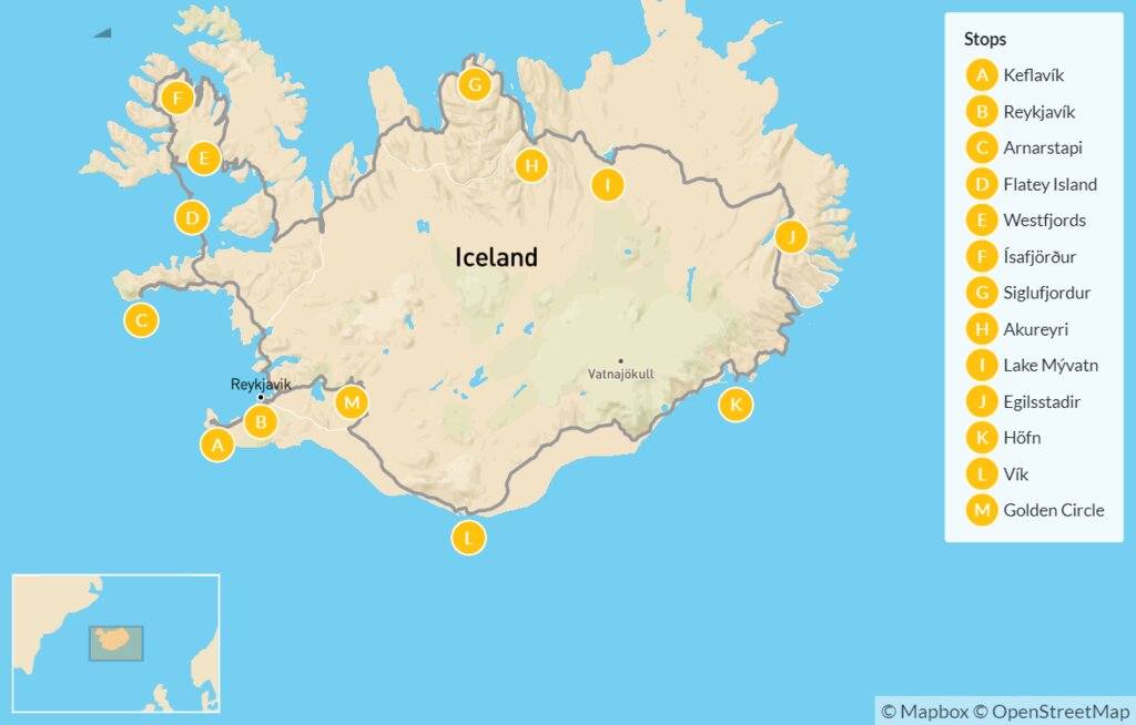 Map of Luxe Yacht & Super Jeep Odyssey Around Iceland – 14 Days
