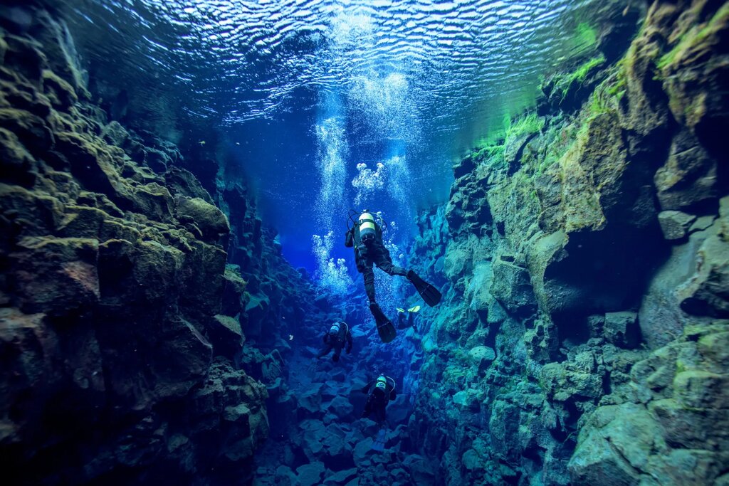 The fun begins when you’re lowered 656 feet (200 m) to the floor via a cage elevator. Surrounded by rough walls in various hues of maroon and ocher, you’ll sit down at a dining table complete with white tablecloth and crystal glassware. After a specially prepared feast cooked by one of Iceland’s renowned chefs, you’ll be whisked to the Þingvellir National Park and the extraordinary Silfra fissure. Created by the separation of the North American and Eurasian tectonic plates, this is one of Earth’s clearest bodies of water, and you’ll don your snorkeling gear and tick off a true bucket list moment as you dive in.