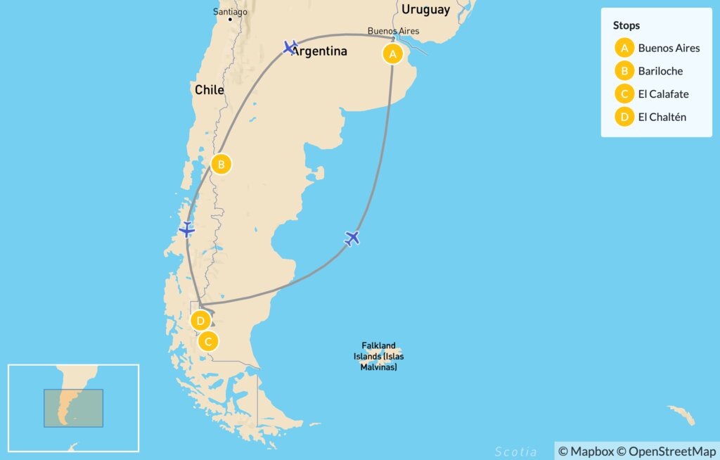 Map of Luxury Adventure in Argentine Patagonia – 10 Days