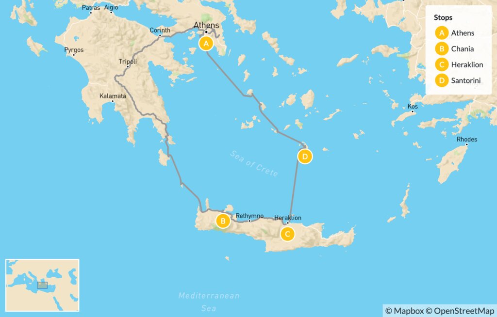 Map of Luxury & Adventure in Greece: Athens, Crete & Santorini – 10 Days