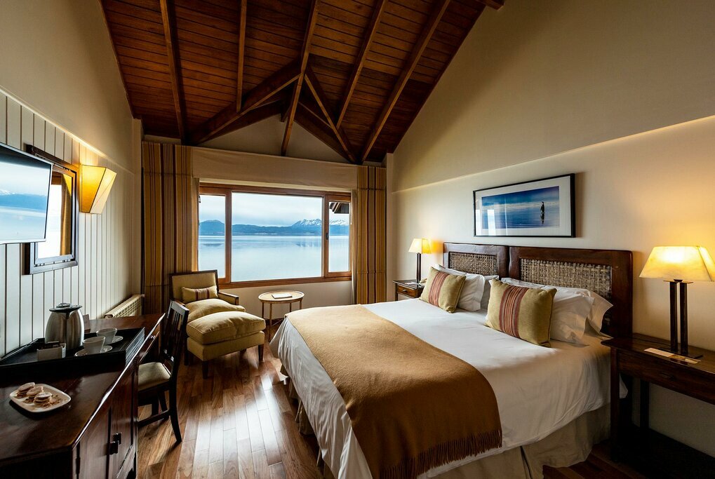 Upon arrival, a driver will pick you up and transfer you to your hotel, Los Cauquenes Resort + Spa. This 5-star gem enjoys a privileged location near Tierra del Fuego National Park on the windswept shores of the Beagle Channel. Besides the scenic channel views in your luxurious suite, you can also take advantage of the hotel’s heated indoor and outdoor pools. And when you’re feeling peckish, grab a table at Reinmora, the hotel’s gourmet restaurant, which serves delicious classics like succulent Patagonian lamb and decadent centolla (king crab).