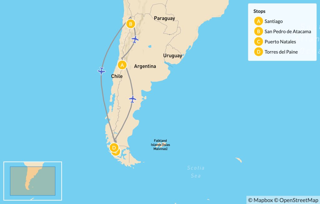 Map of Luxury Atacama Desert & Chilean Patagonia – 10 Days