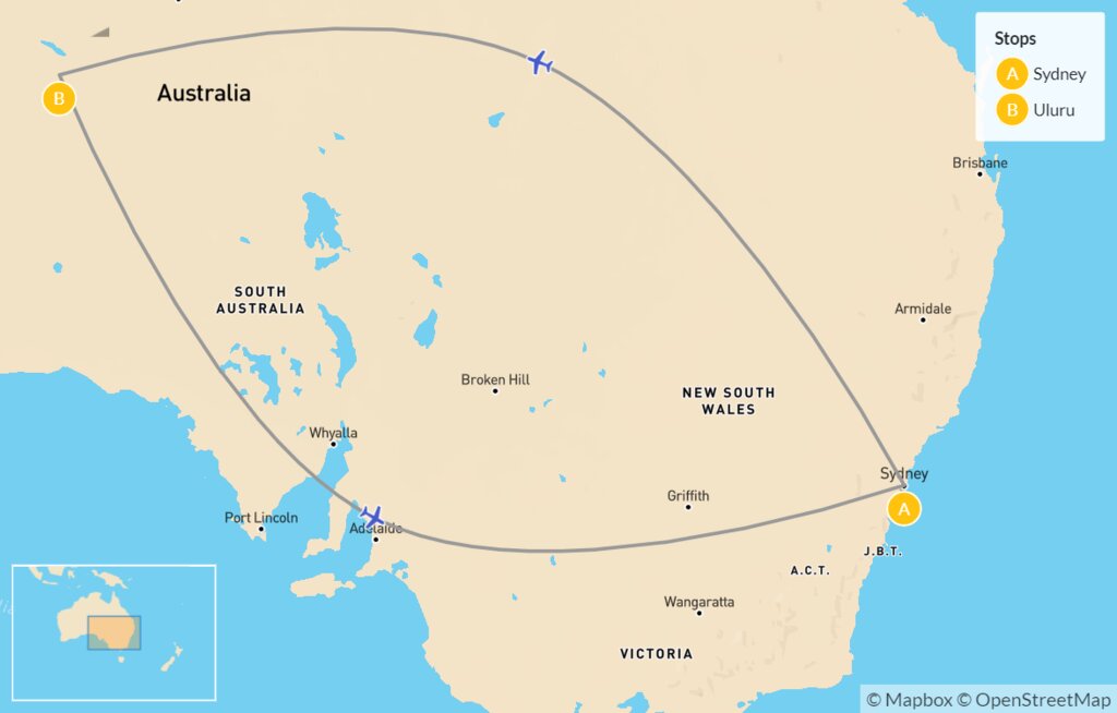 Map of Luxury Australian Outback Experience: Sydney & Uluru – 7 Days