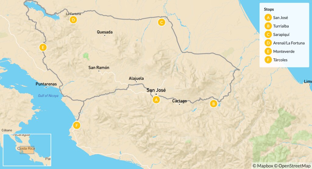 Welcome to Costa Rica! Touch down in the thriving capital, San José, a cultural hub ringed by mountains and volcanic peaks that rise from the fertile Central Valley. Here you’ll pick up your rental car and hit the road for the two-hour journey east to Turrialba. Its eponymous volcano, which is the country’s second-tallest, towers 10,958 feet (3,339 m) above sea level. Along the way, admire views of the region’s jagged mountains and lush valleys.
