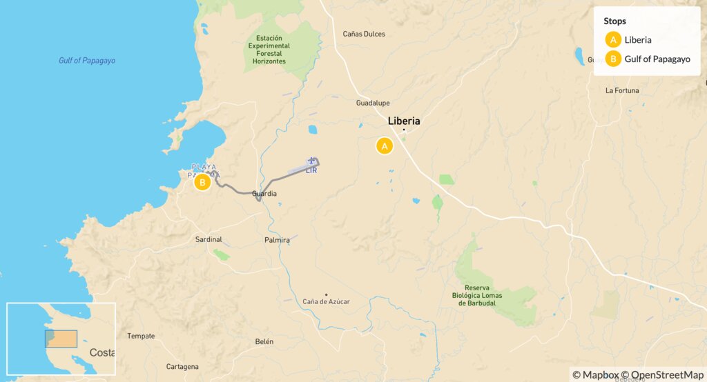 Map of Luxury Costa Rica Beach Escape in the Gulf of Papagayo – 5 Days