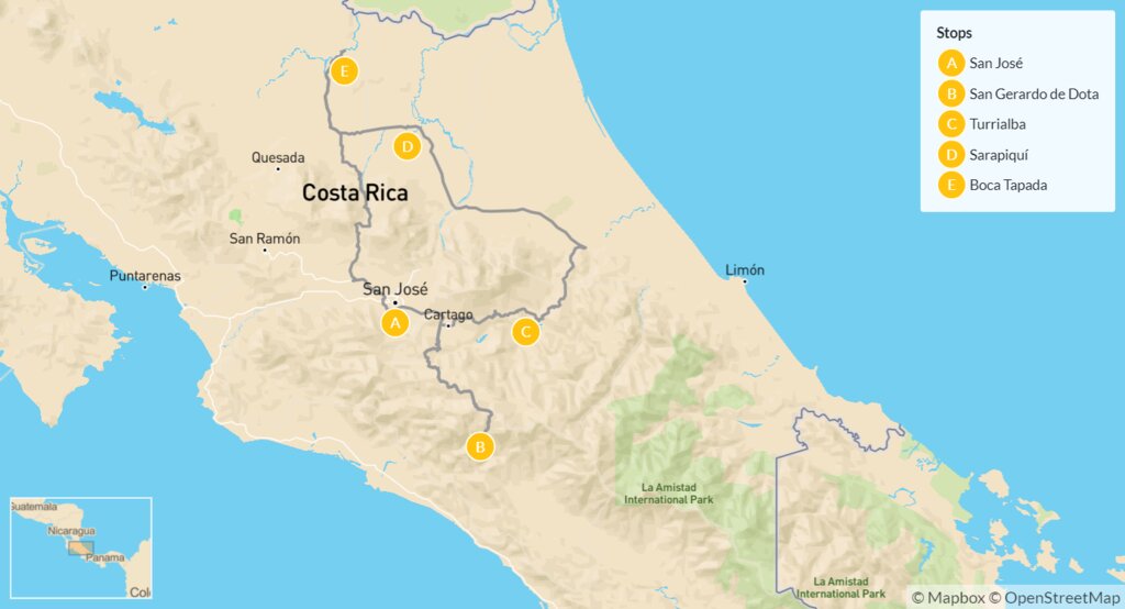 Map of Luxury Costa Rica Birding Getaway – 10 Days