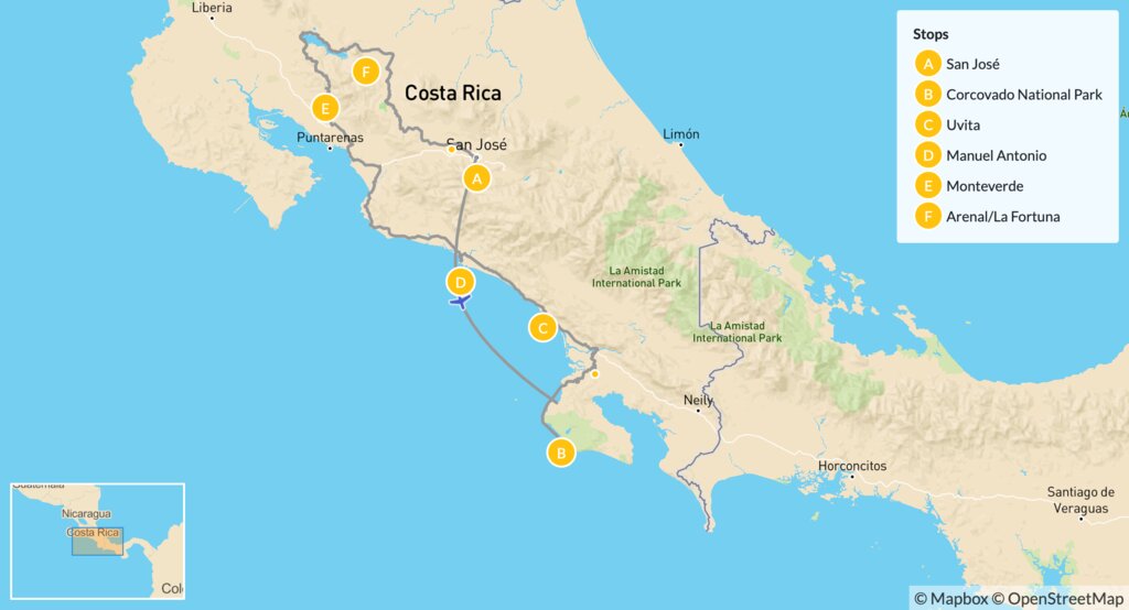 Map of Luxury Costa Rica Discovery: Forests, National Parks & Beaches – 14 Days