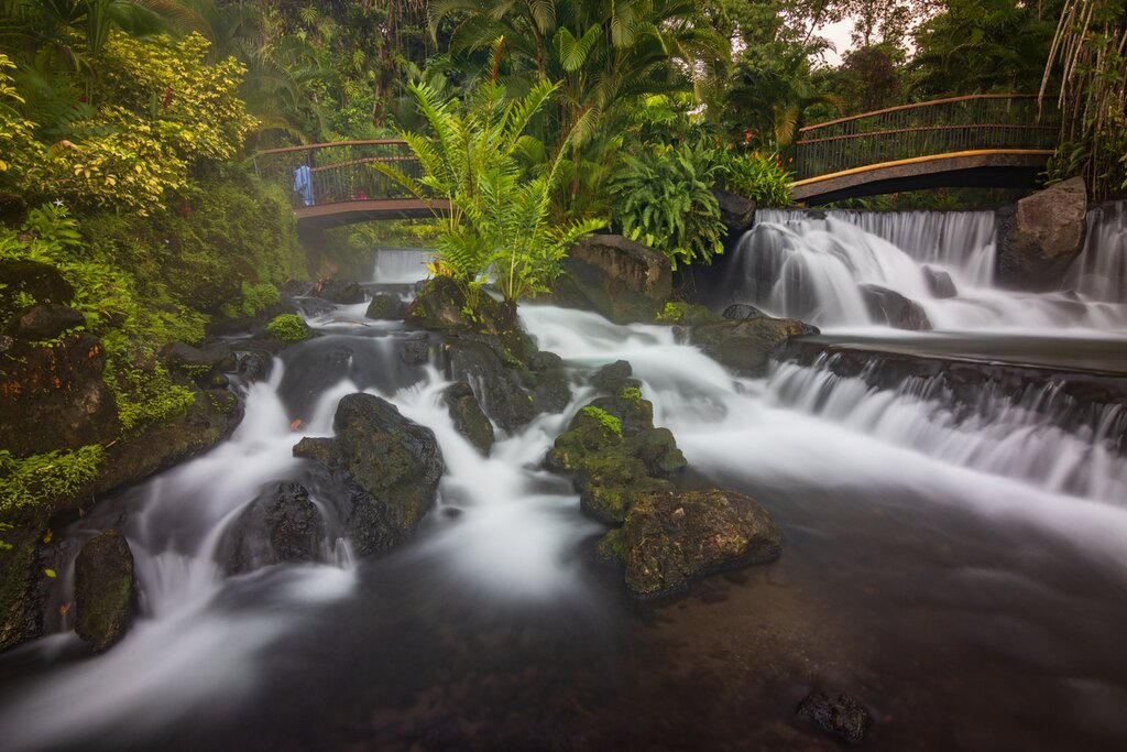Later, you’ll arrive in La Fortuna, a town that sits at the base of the iconic Arenal volcano. Here, you’ll check into your hotel: Tabacón Thermal Resort & Spa. The entire region is known for its thermal springs, and this 4.5-star luxury resort makes great use of these geological wonders. After checking in, you can enjoy a nice long soak in the hotel’s network of hot springs. For dinner, you can choose between the hotel’s two restaurants or reserve a six-course private dining experience amid rainforest scenery.
