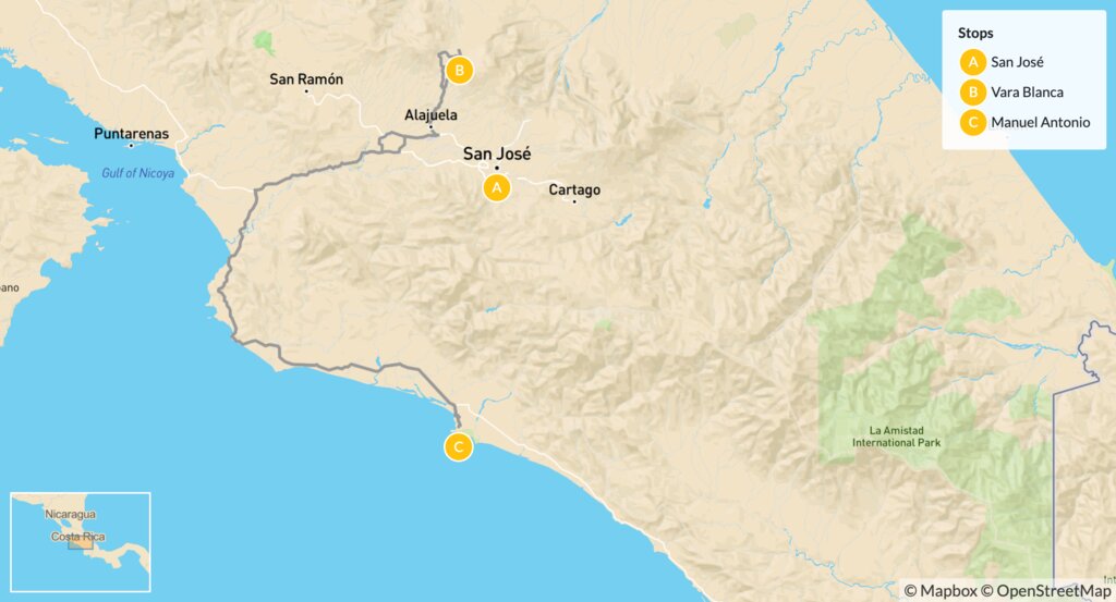 Map of Luxury Costa Rica Landscapes & Wildlife: Vara Blanca & Manuel Antonio – 5 Days
