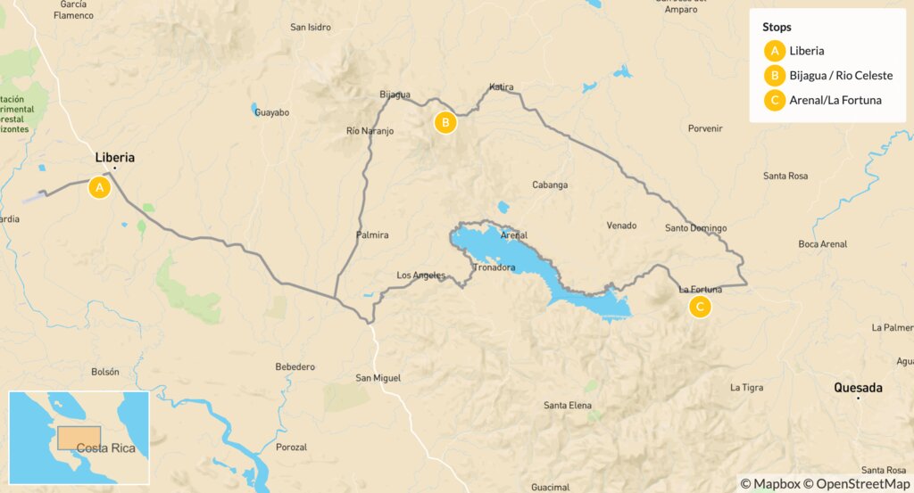 Map of Luxury Costa Rica Rainforest Escape: Río Celeste & Arenal – 5 Days