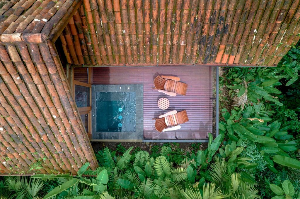 Continue to Amor Arenal in the heart of the rainforest, where you’ll check into your romantic wooden cabin. Features include vaulted ceilings and floor-to-ceiling windows with uninterrupted views of the forest and the Arenal volcano; your suspended deck has a heated whirlpool bath and loungers for relaxing with your beloved.