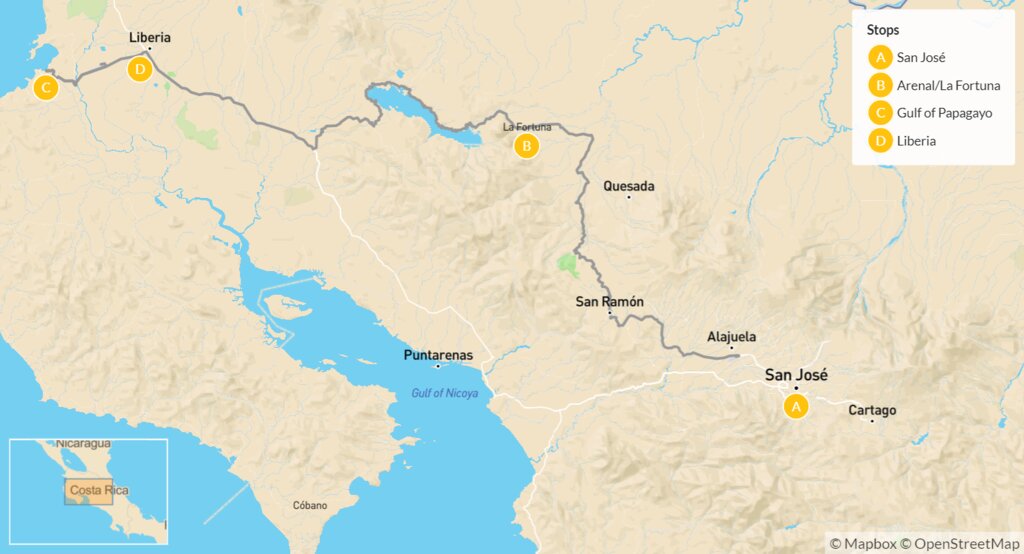 Map of Luxury Costa Rica Romantic Escape: Arenal & Gulf of Papagayo – 7 Days