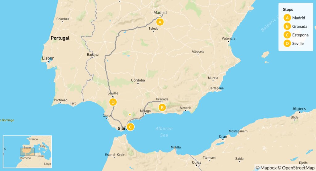 Map of Luxury Cultural Journey Through Southern Spain – 10 Days