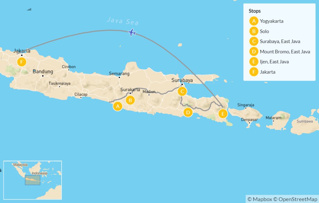 Map of Luxury Cultural Tour of Java: Temples, Traditions & Nature – 14 Days