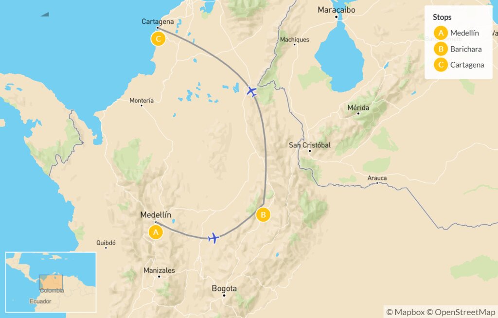 Map of Luxury Culture & Cuisine in Colombia – 7 Days