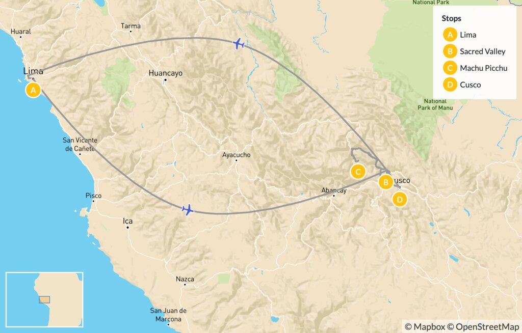 Map of Luxury Culture & Gastronomy Tour in Peru – 7 Days