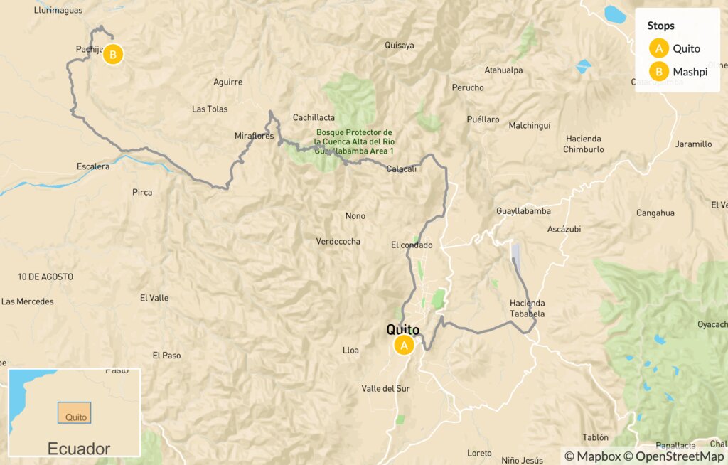 Map of Luxury Ecuador City & Cloud Forest Escape – 7 Days