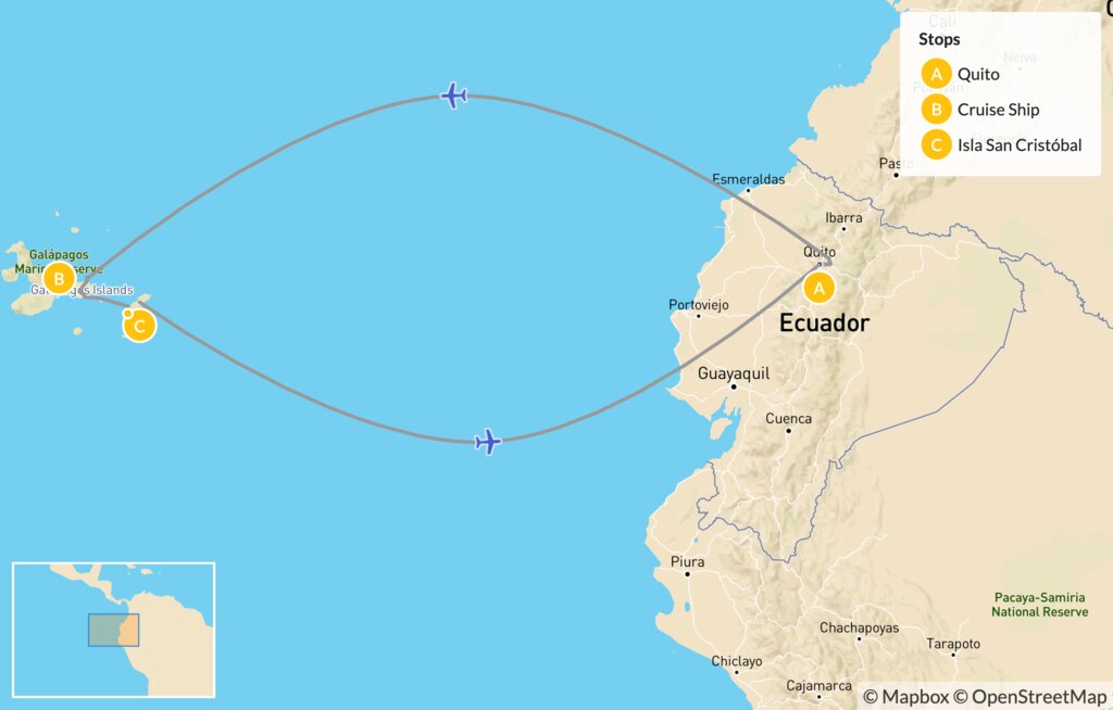 Map of Luxury Ecuadorian Andes & Galápagos Escape – 14 Days