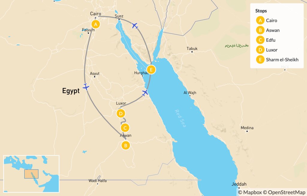 Map of Luxury Egypt Nile Cruise & Red Sea Relaxation – 7 Days