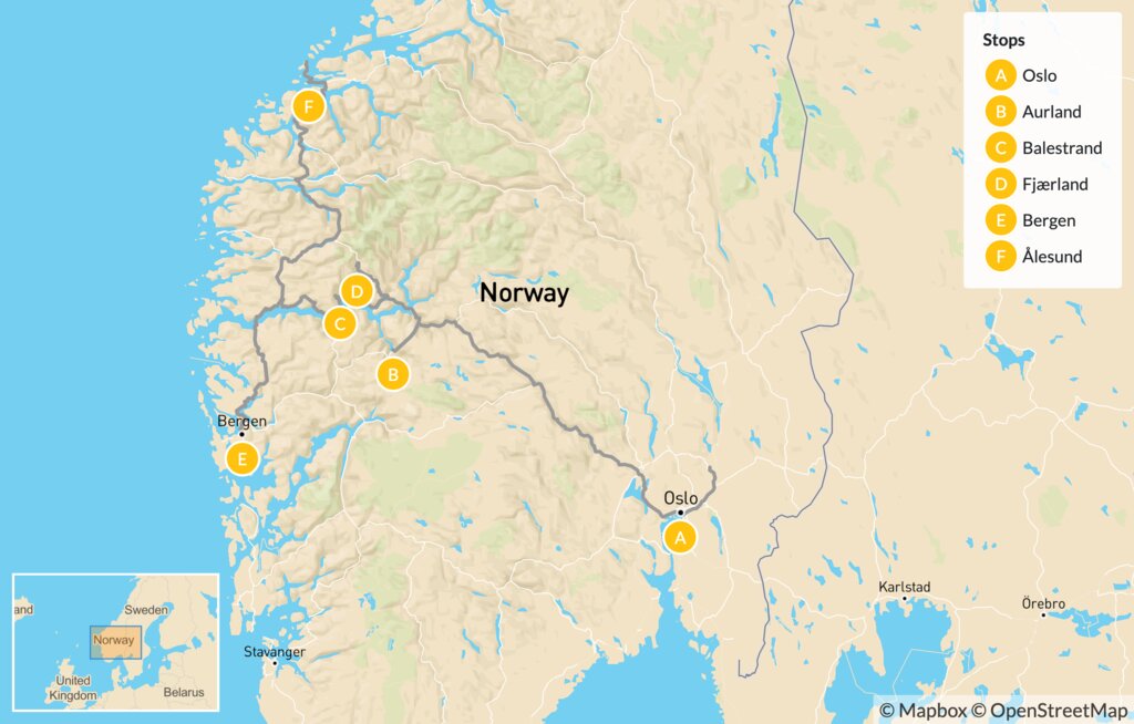 Map of Luxury Escape to the Norwegian Fjords – 14 Days