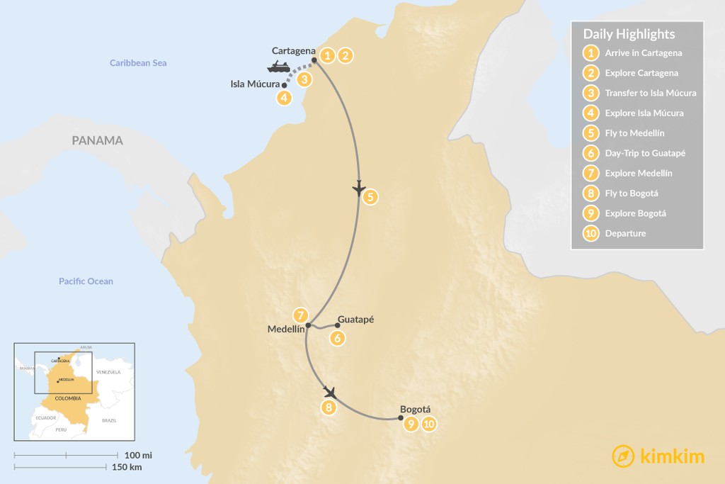 Map of Luxury Family Adventure in Colombia – 10 Days