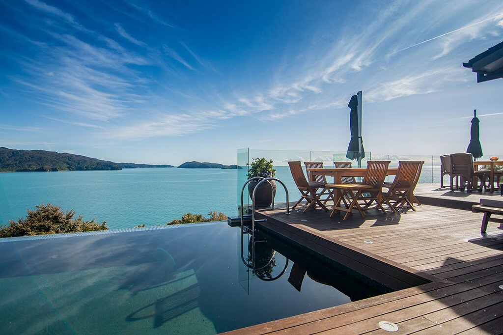 If you’re still looking for more adventure this afternoon, hike the Routeburn Track, one of New Zealand’s most renowned trails. Tackling this 20-mile (32 km) track takes a few days, so you’ll experience just a part of it with a 4.5-hour guided hike. Enjoy the landscapes of Fiordland National Park and Mount Aspiring National Park and the sound of rivers, waterfalls, and native birds as you hike, then return to your Queenstown retreat to soothe your muscles in the lakeside Jacuzzi.
