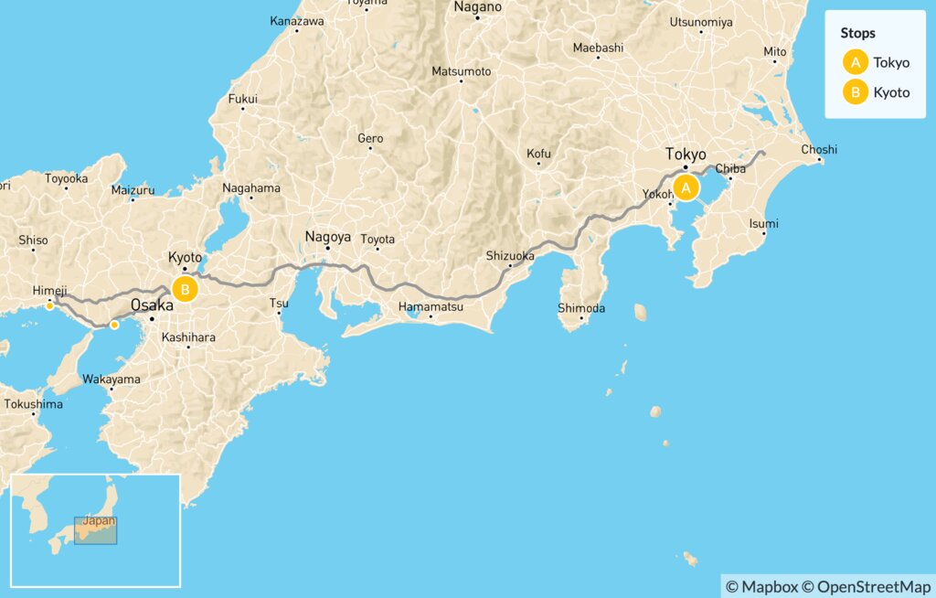 Map of Luxury Foodie’s Tour of Japan: Tokyo & Kyoto – 7 Days
