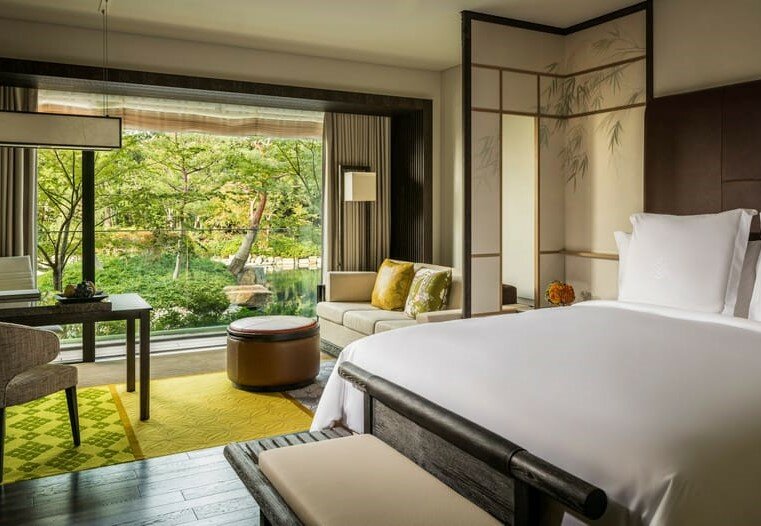 Stroll the walkway composed of thousands of vermillion-colored torii gates (all donated by individuals and businesses as a sign of appreciation to the god Inari). After a gentle hike up the mountain, you’ll reach the shrine. Take in the sweeping views of the countryside before returning to your driver. Your accommodation is the 5-star Four Seasons Kyoto, nestled around a beautiful 800-year-old pond garden. Premier rooms are elegantly furnished and combine traditional Japanese design elements with luxury modern furnishings with a palette of dark woods, warm creams, and neutrals.