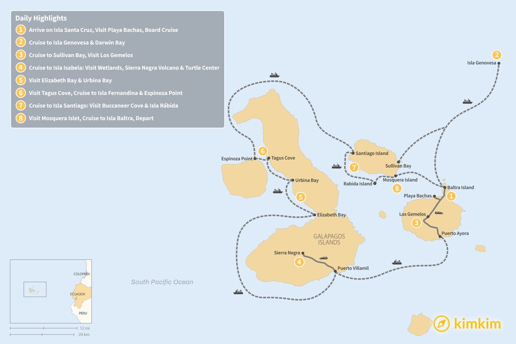 Map of Luxury Galápagos Cruise & Classic Wildlife Highlights – 8 Days