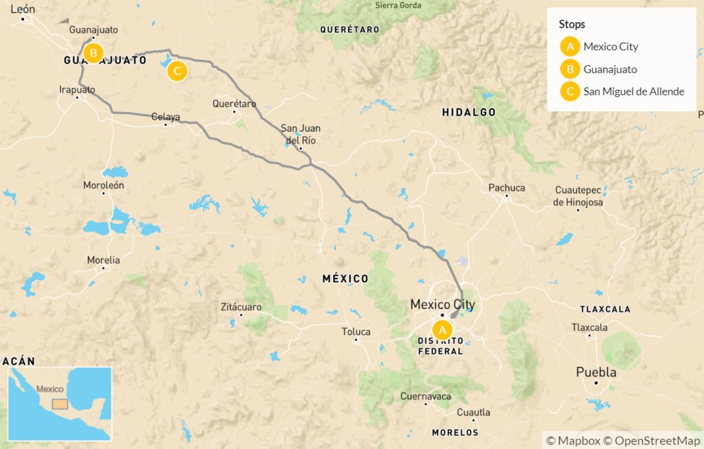 Map of Luxury Getaway in Mexico’s Colonial Cities: Guanajuato & San Miguel de Allende – 5 Days